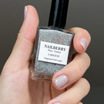 Our crystal clear top coat infused with holographic glitter will leave you gazing at your nails in starry-eyed wonder. Crafted with versatility is at its core, wear alone as a single layer for delicate dazzle, sweep over colour for a shimmering, multi-tonal topper or build to create disco-ball-like sparkle.