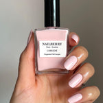 Dip brush into chosen Nailberry Base Coat, remove excess from brush, then apply one thin layer to each nail. Allow 2-3 minutes for base coat to dry fully.