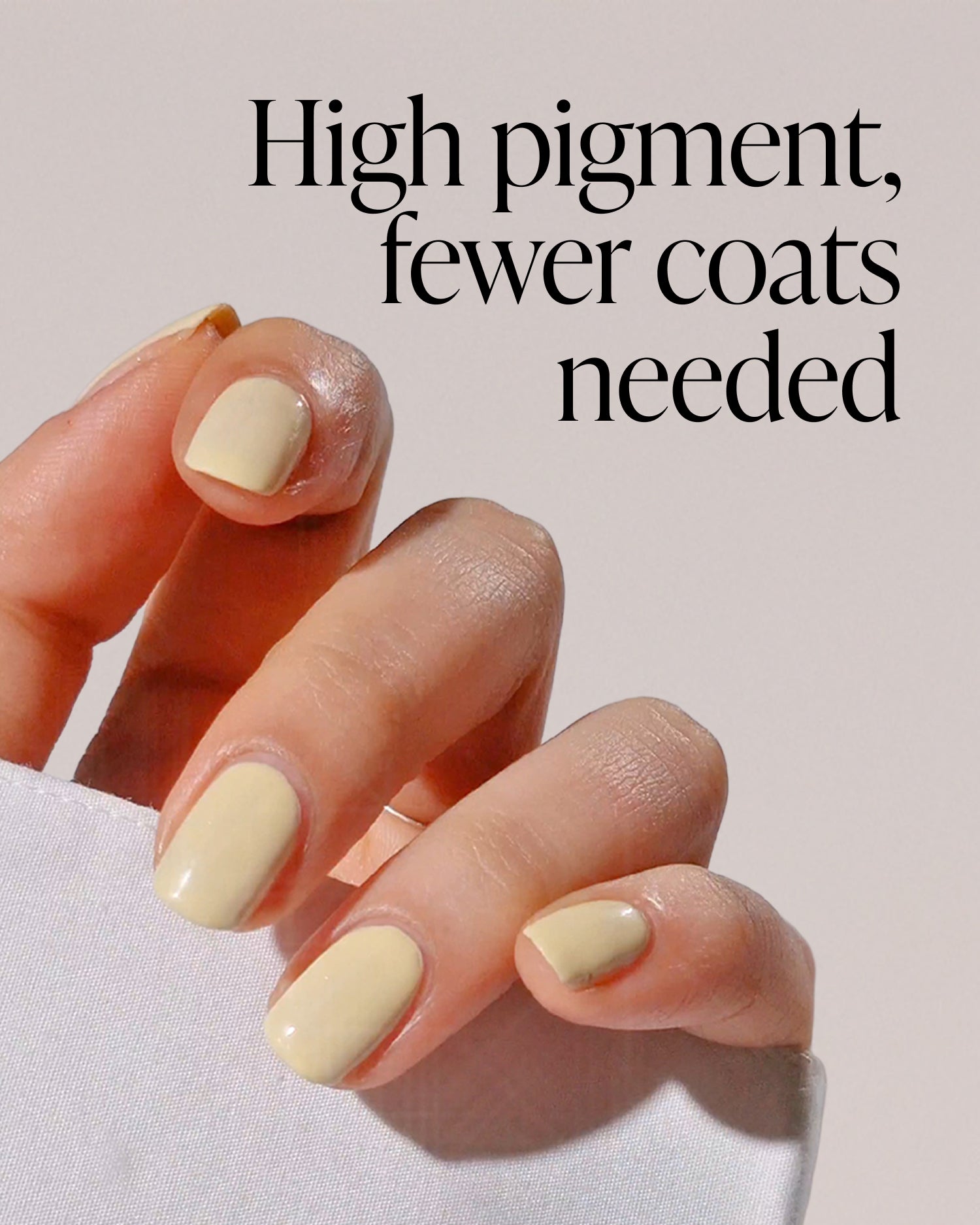 This specially developed, light-to-the-touch formula glides on effortlessly for semi-sheer high shine colour in one sweep. Protect its vibrancy with a finishing sweep of our Shine & Breathe Top Coat and colour your nails healthy!