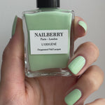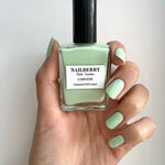 Apply one thin coat of your chosen Nailberry polish, using our wide, tapered brush to flawlessly coat your nail from base to tip. Work on both hands to allow each layer to dry.