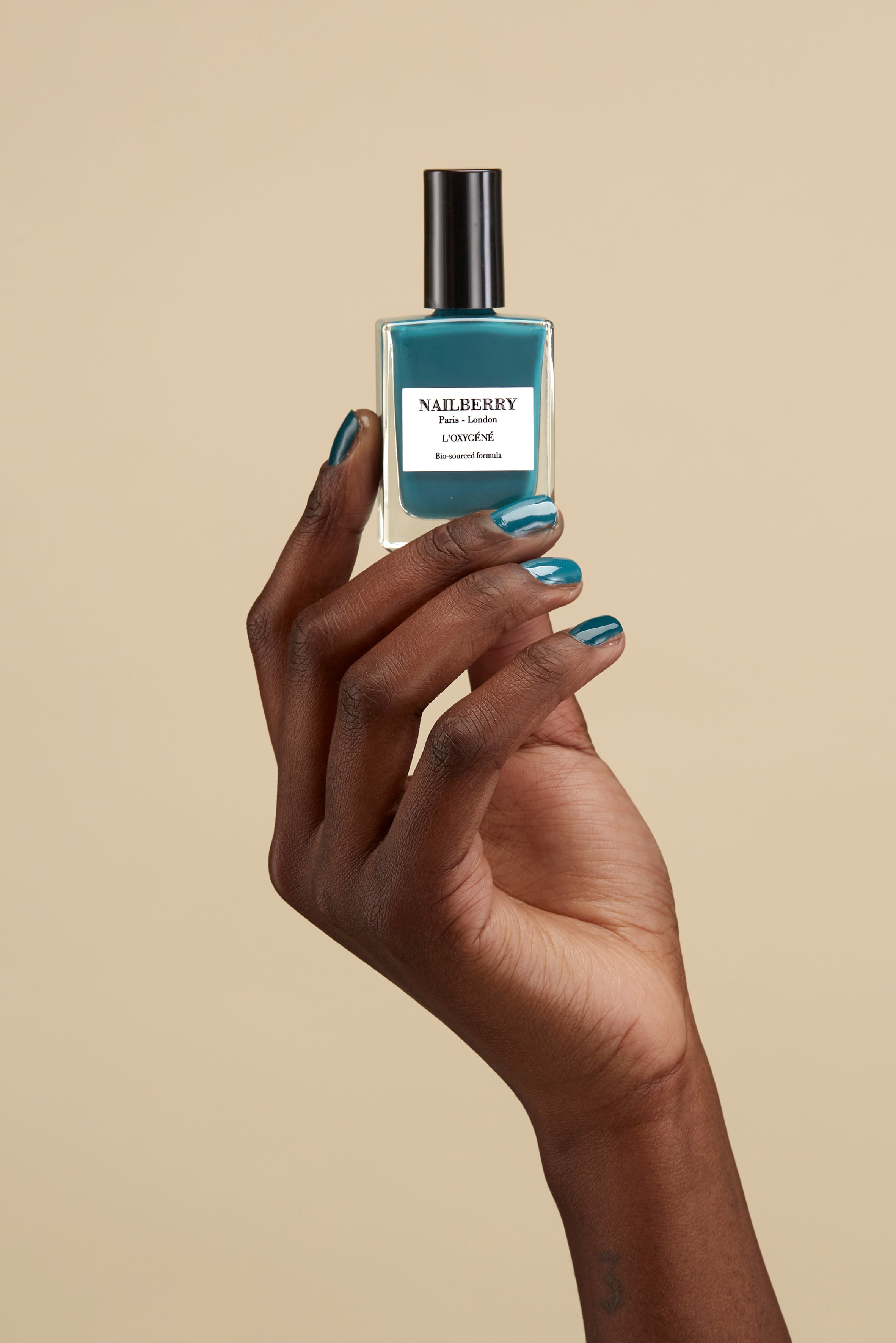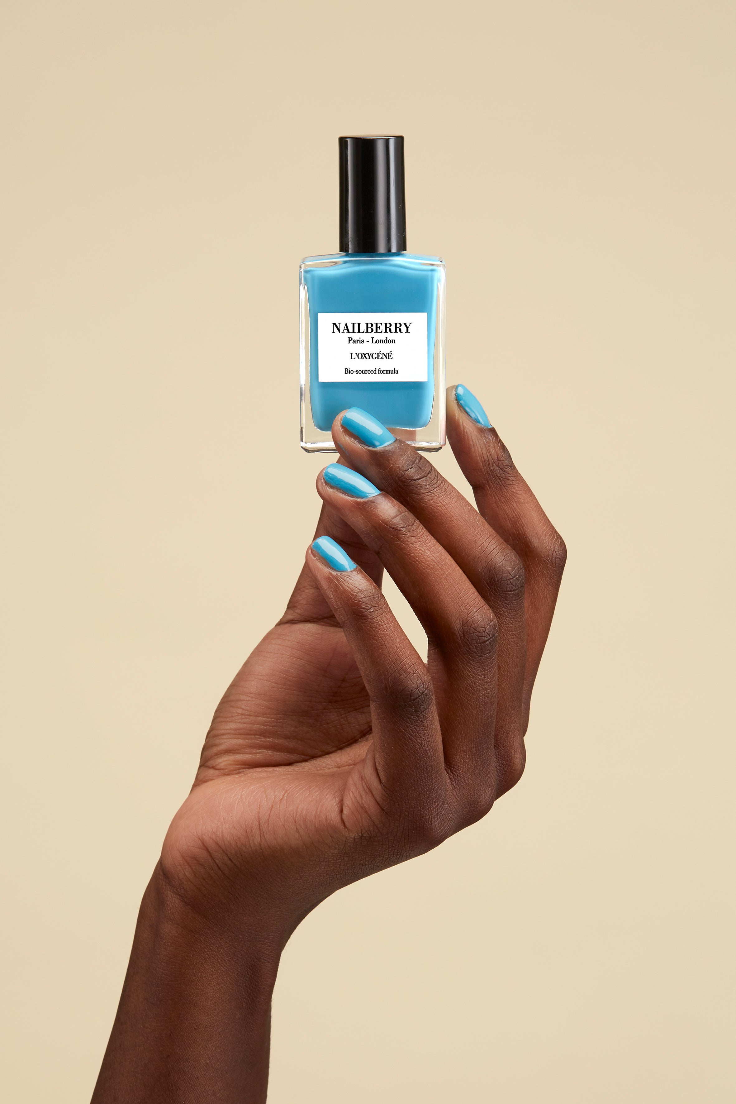 Dip brush into chosen L’Oxygéné Colour, remove excess from brush, then apply one thin layer to each nail. Allow 2-3 minutes to dry, then apply a second thin layer to each nail and allow to dry.